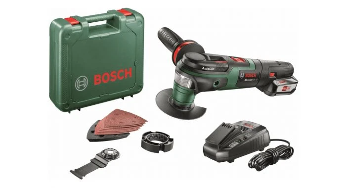 De Bosch AdvancedMulti 18 is een multitool die werkt op een 18 volt 2,5 Ah Li-Ion accu. Dat is handig als je ergens aan de slag gaat waar je geen stroomvoorziening hebt. Daarnaast heb je de mogelijkheid een extra handvat te monteren voor meer grip en controle. Dit handvat dempt de trillingen, wat wel zo prettig werkt. Je krijgt alvast 3 accessoires meegeleverd. Zo heb je een invalzaagblad voor het uitzagen van vormen, een segmentzaagblad voor diverse zaagwerkzaamheden en schuurplateau met schuurbladen voor het schuurwerkzaamheden. De diepteaanslag voorkomt dat je bij het zagen te diep in het materiaal gaat. Met de AdvancedMulti 18 klaar jij dus diverse klussen.