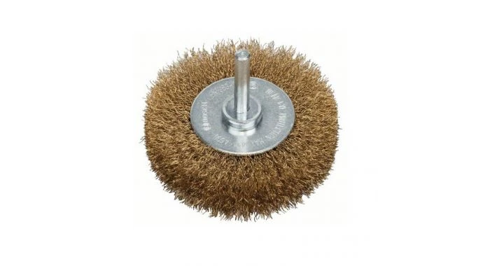 Schijfborstel – gegolfde draad, vermessingd. Optimaal geschikt voor het verwijderen van aanloopkleur op lasrupsen. Geschikt voor lichte tot middelzware reinigingswerkzaamheden op kleine vlakken, in groeven of langs randen op metaal of non-ferrometaal, zoals ontroesten, opruwen, matteren, ontlakken, bewerken van hout. Voordeel: corrosiebescherming door vermessingde draad.